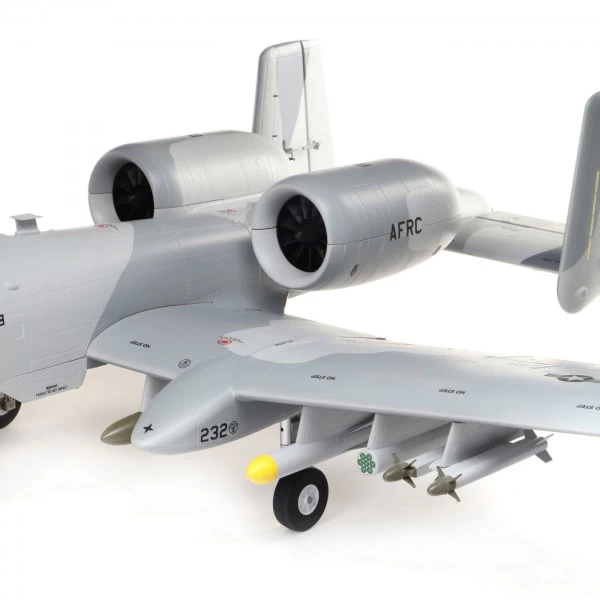 Doté d’un tout nouveau design, le jet E-flite® A-10 Thunderbolt II Twin 64mm EDF (Electric Ducted Fan) est le modèle le plus performant et le plus maniable de l’avion populaire de l’armée de l’air américaine à ce jour. Ses deux turbines de 64 mm à 11 pales sont alimentés par des moteurs brushless à haut régime qui sont couplés à des ESC de 40 A câblés pour utiliser une seule batterie 6S 3200-4000 mAh. Ce système d’alimentation parfaitement conçu produit une excellente vitesse de pointe – jusqu’à 160 km/h en vol en palier – et des performances verticales illimitées tout en offrant des temps de vol inégalés dans sa catégorie. Le BEC séparé et les neuf servos numériques installés en usine avec des tringleries équipées de rotules permettent un contrôle précis et fiable. Une longue liste de caractéristiques fonctionnelles comprend des feux de navigation à LED, des volets opérationnels, des gouvernails de direction doubles et des trains électriques avec amortisseurs pour que vous puissiez voler sur une variété de surfaces, y compris les pistes en herbe. Des détails tels que des munitions amovibles, la reproduction des panneaux, un cockpit avec une figure de pilote et bien plus encore encore ajoutent à l’incroyable apparence maquette. De plus, il est livré avec une finition d’usine dans le rare décor « Flipper » à trois tons de gris de camouflage qui est très beau au sol et dans les airs. Tout cela permet de livrer un « Phacochère » de taille pratique, plus facile à ranger et à transporter, tout en offrant des sensations de vol inégalées que vous apprécierez vol après vol !