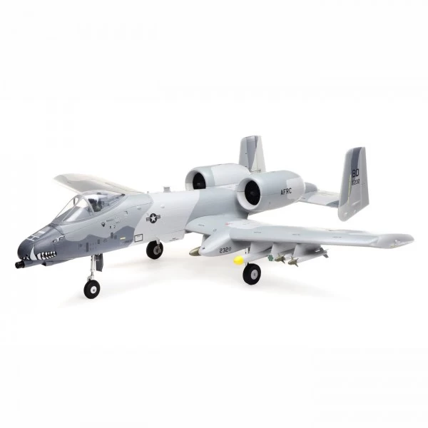 En tant que principal avion d’appui aérien rapproché de l’armée de l’air américaine, l’A-10 Thunderbolt II est souvent appelé affectueusement le « Warthog » (phacochère) en raison de son aspect agressif et parce qu’il s’agit d’une plate-forme armée très précise et résistante. Le nez – souvent décoré de dents peintes – est équipé d’un canon GAU-8 Avenger de 30 mm qui libère la morsure destructrice des balles incendiaires perforantes. Le E-flite® A-10 Thunderbolt II Twin 64mm EDF est une réplique à l’échelle de l’avion emblématique qui a servi avec distinction dans les opérations Tempête du désert, Renard du désert, Liberté immuable entre autres. Il offre une excellente vitesse de pointe et des performances verticales illimitées, tout en offrant une maniabilité fantastique et en étant plus facile à piloter que jamais lorsqu’il est équipé des technologies exclusives Spektrum™ AS3X® et SAFE® Select (version BNF® Basic uniquement).